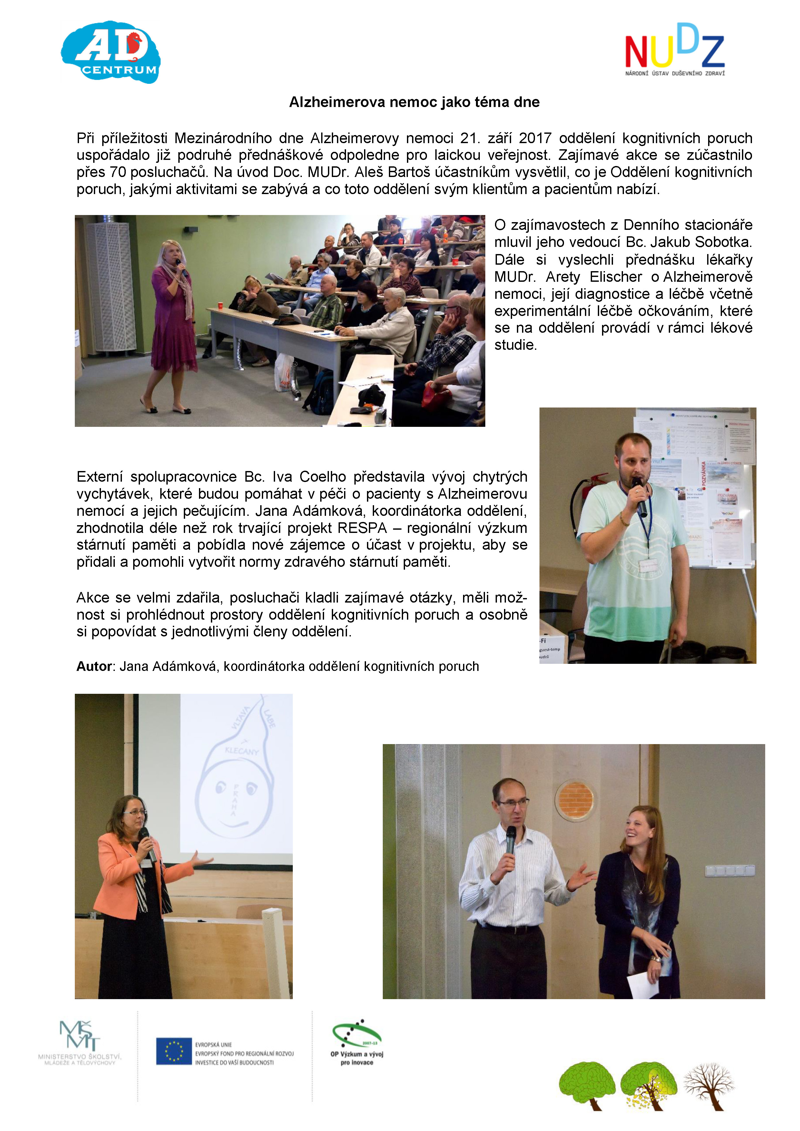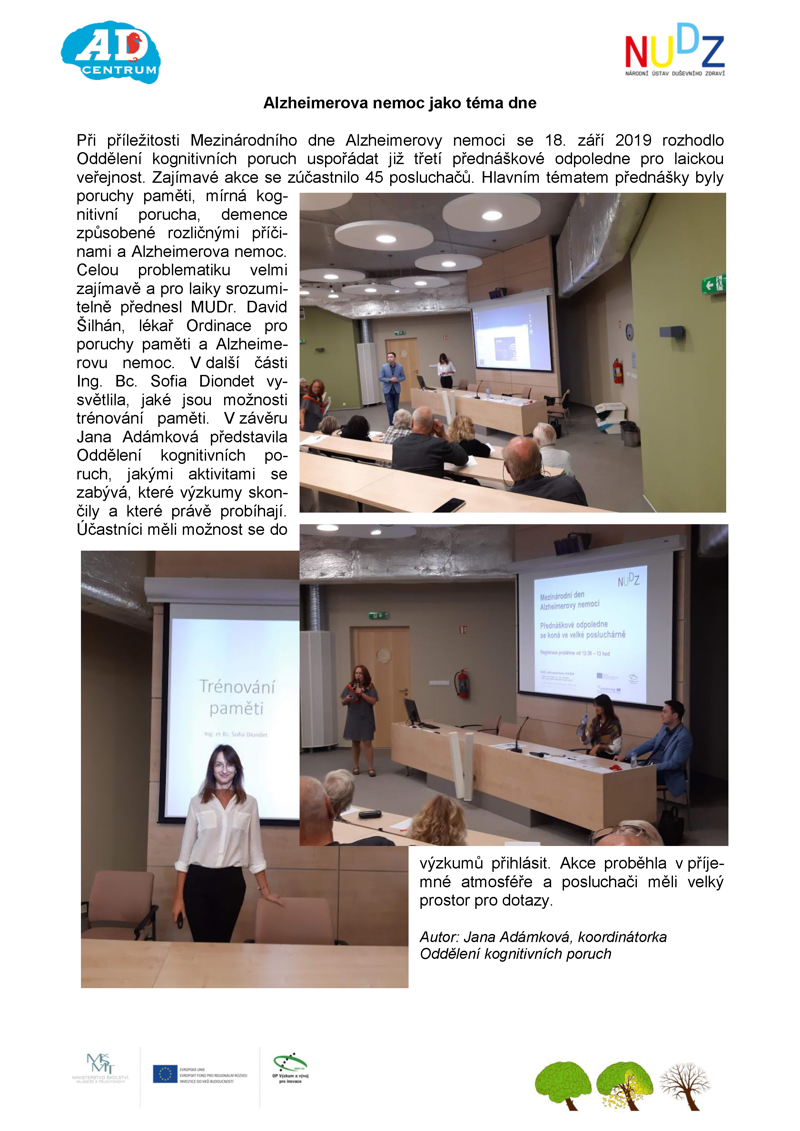 upozornilo Oddělení kognitivních poruch u příležitosti